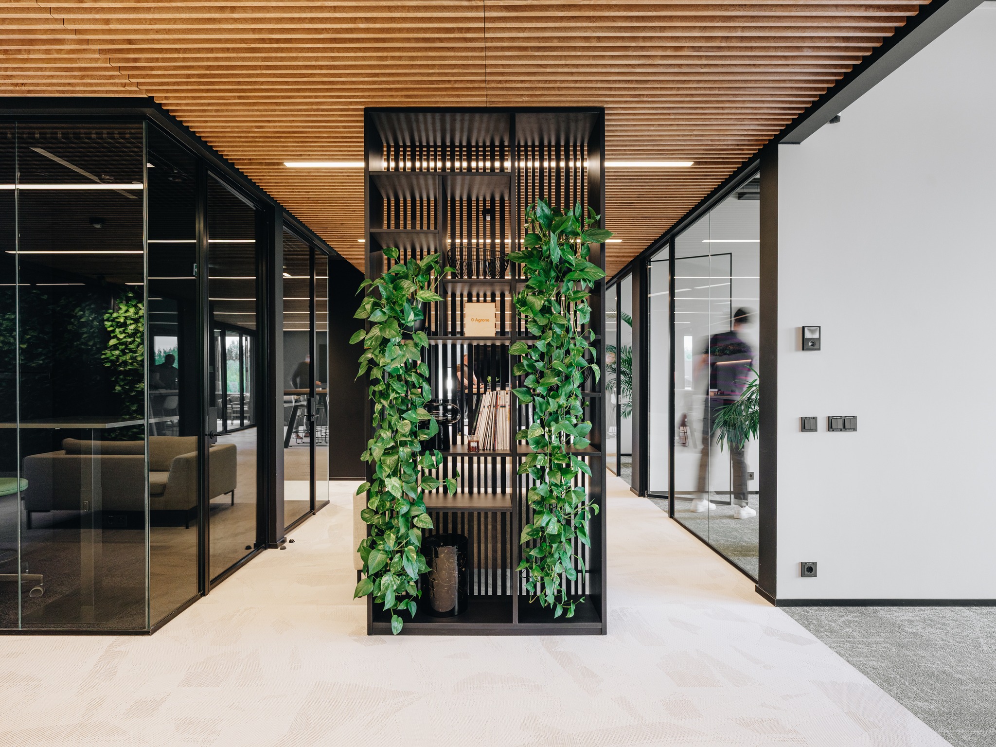 Agrone bränd on tihedalt seotud kogu Rohelise Pargi looga ja on selle eestkandjaks, mistõttu jäid ka siin fookusesse rohelised taimed, millele on taustaks eri materjalides sisse tulev must toon. Mustale vastukaaluks lookleb kogu kontoris hele vinüülsisalvaip, mis koos valguse peegeldustega toob sisse ebakorrapärast loodusele omast detailsust. Olulise materjalivalikuna annab puit ruumidesse soojust ja tasakaalustab tumeda osakaalu.